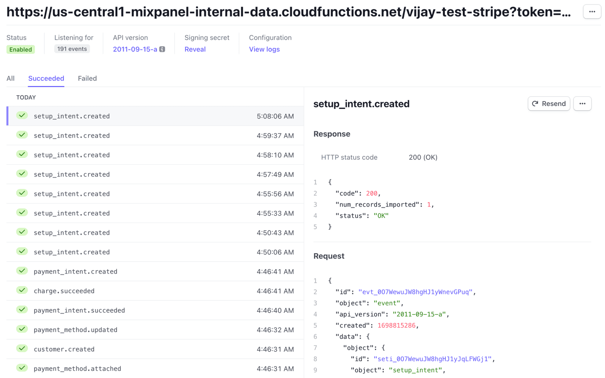 🎉 Congrats: you now have a fully functioning Stripe -> Mixpanel integration!